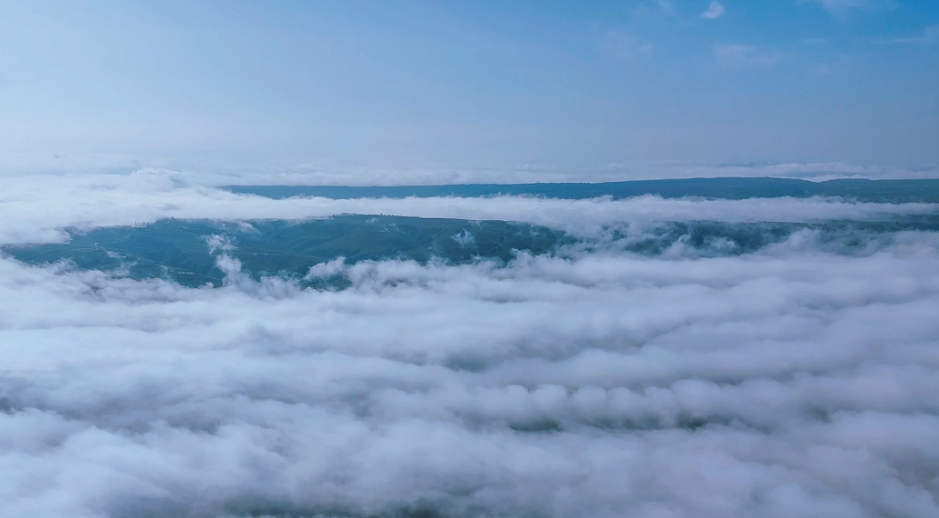 宁夏盐池县麻黄山:雾漫群山 云海翻涌
