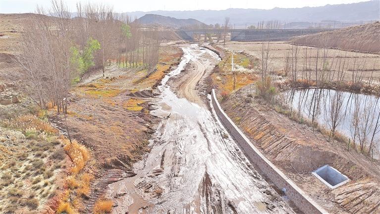 缘溪行,植被葱茏,村中老人在家门口晒太阳。再向林深处行进,出现一泓清泉。“七八个泉眼和溪流同出一源,我们小时候都跟着父母来这儿挑水。”中卫市沙坡头区迎水桥镇长流水村党支部书记黄兴川说。