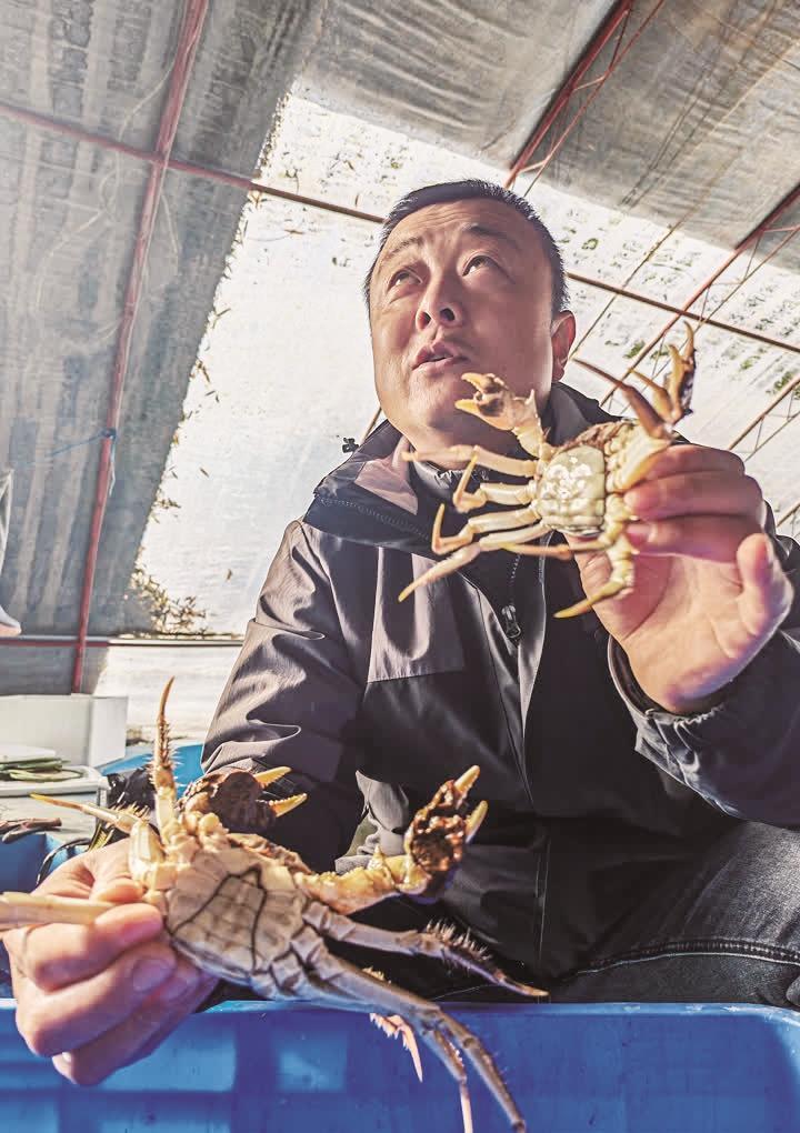 刘亚丽的线上直播,在线下得到贺兰大闸蟹口碑获赞、金杯频揽的印证。池塘水来源于黄河,水质清澈偏碱,富集钙、镁等微量元素,加上充足的日照和较大的昼夜温差,拉长了河蟹的育肥周期,不仅养出“青背白肚、金爪黄毛”的标准品相,咬一口更是肉质紧实、鲜甜满溢。就在今年11月11日,在上海举办的“王宝和杯”全国河蟹大赛上,贺兰县4家企业带着“塞上湖蟹”参赛,捧回“金蟹奖”“最佳种质奖”“最佳口感奖”等多个大奖。