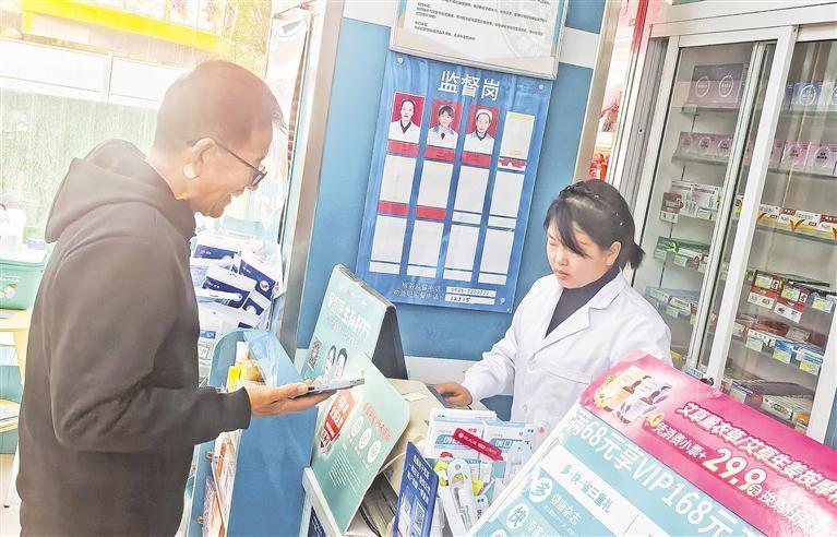 居民在中卫市沙坡头区一家药店扫医保码购药。