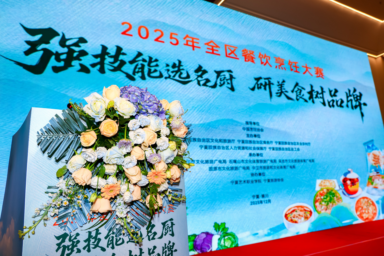 12月23日,由宁夏回族自治区文化和旅游厅、商务厅、农业农村厅、人力资源和社会保障厅、总工会联合主办的2025年宁夏餐饮烹饪大赛开幕。本届大赛以“强技能选名厨·研美食树品牌”为主题,来自区内外的评审专家、五市文旅部门代表、参赛选手、院校及行业代表、媒体记者等300余人,共同见证一场以匠心对话传承、以美食传递文化、以技艺共谋发展的大赛。