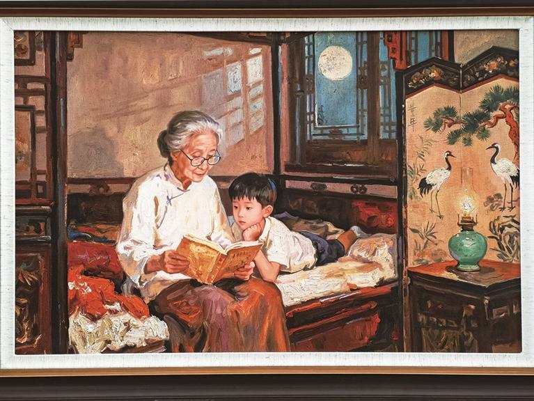 家的感觉在哪里?在画家单瑞琦的作品《奶奶的故事》里。银发挽成高髻的老人,托腮凝神聆听的孩童,如水的月光透过窗棂,轻轻洒在祖孙俩身旁,这是很多人童年里最难忘的、属于家的记忆。