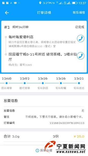 宁夏新闻网讯(记者 祁瀛涛)1月27日,银川迎来了2018年的第二场雪。尽管雪很大,但一家外卖平台的外卖小哥却收到了一份别样的温暖。