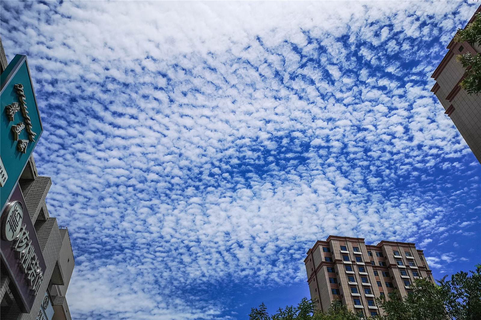 6月28日,银川透彻的蓝天中出现美丽的鱼鳞云,让蓝天更加明媚。 宁夏新闻网记者 祁瀛涛 摄