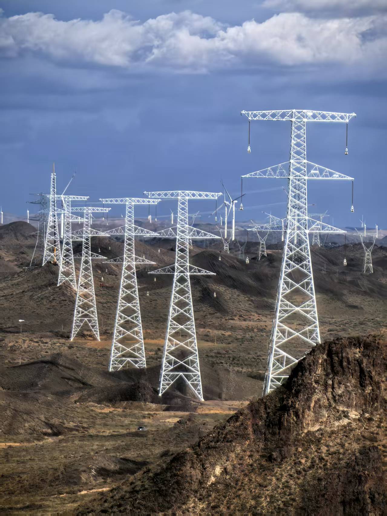 该工程自7月1日开工以来,先后投入25个基础、组塔架线班组共计450余人次,投入26台吊车及3套集控可视化牵张放线设备,目前已完成100%的铁塔组立及70%的导地线架设施工,按照里程碑计划预计11月9日完成送电。宁夏中卫热电扩建电厂750千伏送出工程作为“宁电入湘”配套工程,对宁夏电网网架优化、宁电外送具有重要意义。(图片由受访单位提供)