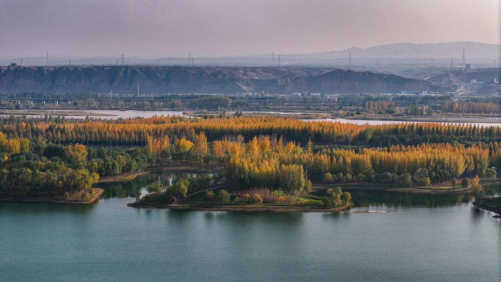 宁夏中卫秋色上新:金叶婆娑映碧波,香山湖光织秋锦!