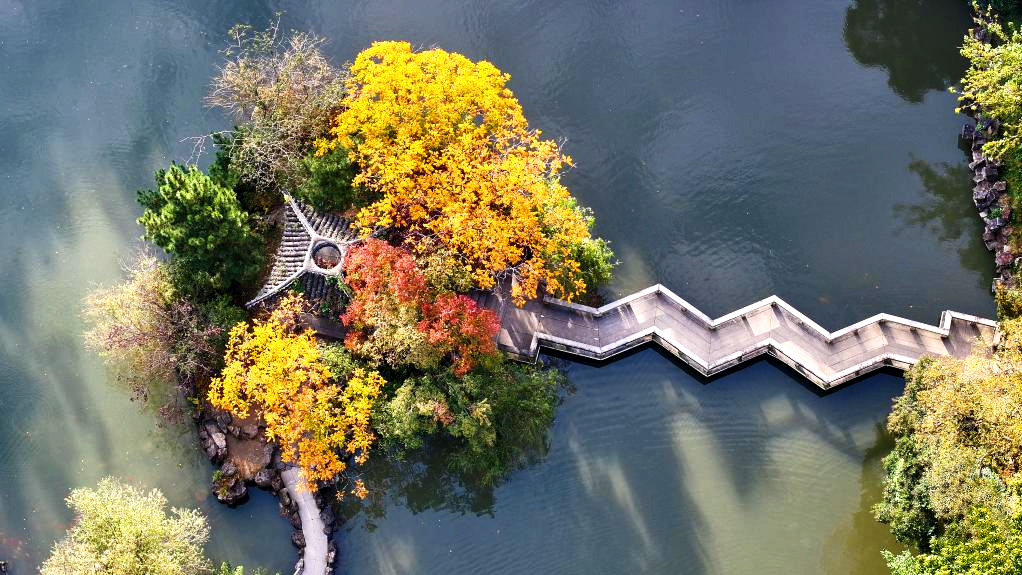 初冬时节,我国多地依旧气候宜人。无人机视角下,景色斑斓,美景如画。
