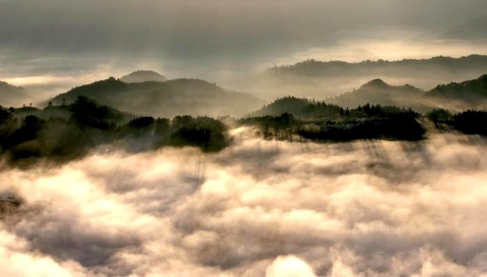 11月25日,广西三江侗族自治县县城被平流雾笼罩。无人机镜头下,鳞次栉比的楼宇在云海中若隐若现,远处青山与城市轮廓相映成趣,宛如一幅水墨画卷,尽显侗乡晨曦的朦胧诗意。图为三江侗族自治县云海美景。
