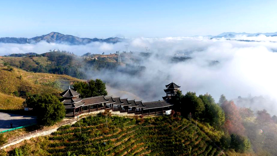 11月29日,广西三江侗族自治县易地搬迁万亩茶园产业振兴园迎来壮美云海。无人机镜头下,流云漫过青山,将南站社区与连绵茶园轻拥入怀。晨雾缭绕间,山巅民宿如星点缀,远处风电机组与层峦相映成趣,产业园区在云纱间若隐若现,共同绘就一幅“茶海浮云,山乡藏画”的诗意画卷。