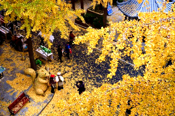 浙江杭州银杏金黄美如画 吸引市民游客打卡
