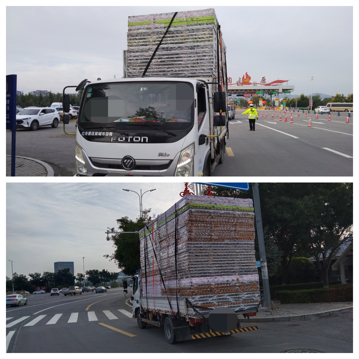 当日上午10时,执勤中的高速交警发现一辆明显超高的货车从收费站驶出,迅速上前将该车截停。民警检查发现,货车所载的货物是窗框,载货严重超高、超长,存在极大安全隐患。经民警询问,驾驶员杨某称其是负责送货的,老板图省事,将本来需要两辆车装的货物用一辆车全部装上,没想到刚下收费站就被交警查获。