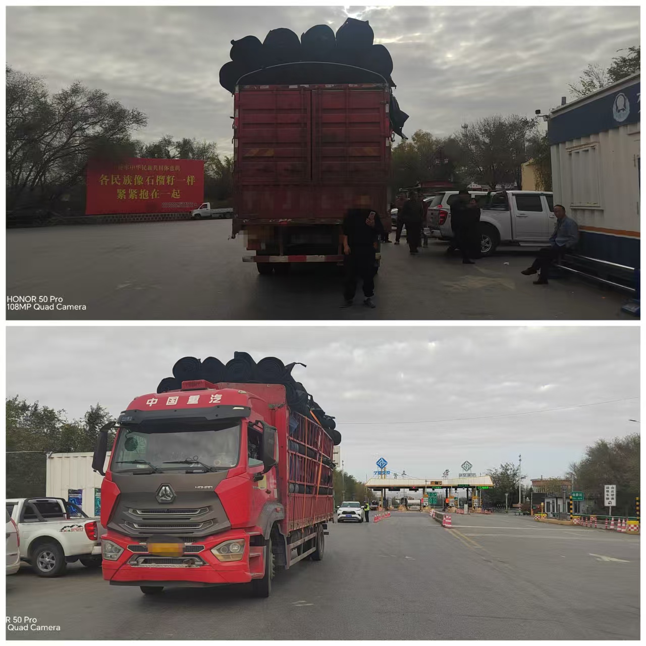 12月4日16时许,固原市高速交警一大队民警在固原收费站站口执勤过程中,发现一辆货车所载的货物严重超长。民警立即示意该车辆靠边停车接受检查,发现该车存在严重安全隐患。
