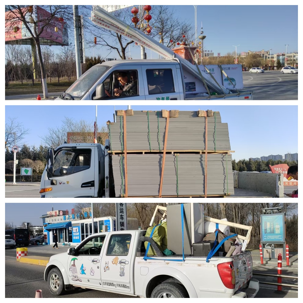 现场检查发现,涉事车辆均存在货物超出车厢、高度远超安全限值的问题。其中一辆皮卡装载的家具、行李等物品货物高度超出驾驶室近1米;另有车辆违规运输建材、设备,捆绑固定松散,行驶中极易发生货物掉落、侧翻风险。