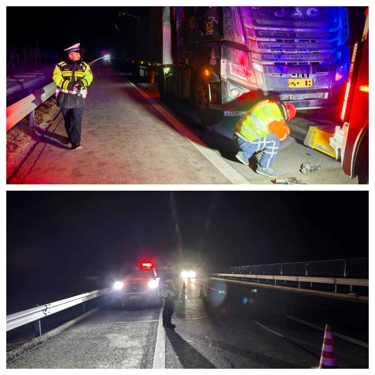 1月21日2时30分许,中卫市公安局交通管理局高速公路三大队接报警称:在福银高速由南向北2293km处,一辆重型半挂厢式货车停在行驶道内,无法移动。接警后,大队民警立即赶往现场。