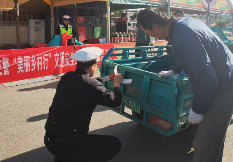 “骑电动车送菜一定要戴头盔,农用车可不能拉着人去菜地。”针对村民日常出行场景,民警逐一拆解骑乘摩电不戴头盔、酒后驾驶、占道晒菜等常见交通陋习的风险点,特别叮嘱“一老一小”群体注意过马路观察来车、乘车系好安全带、给过往电动车粘贴反光标示贴等细节。