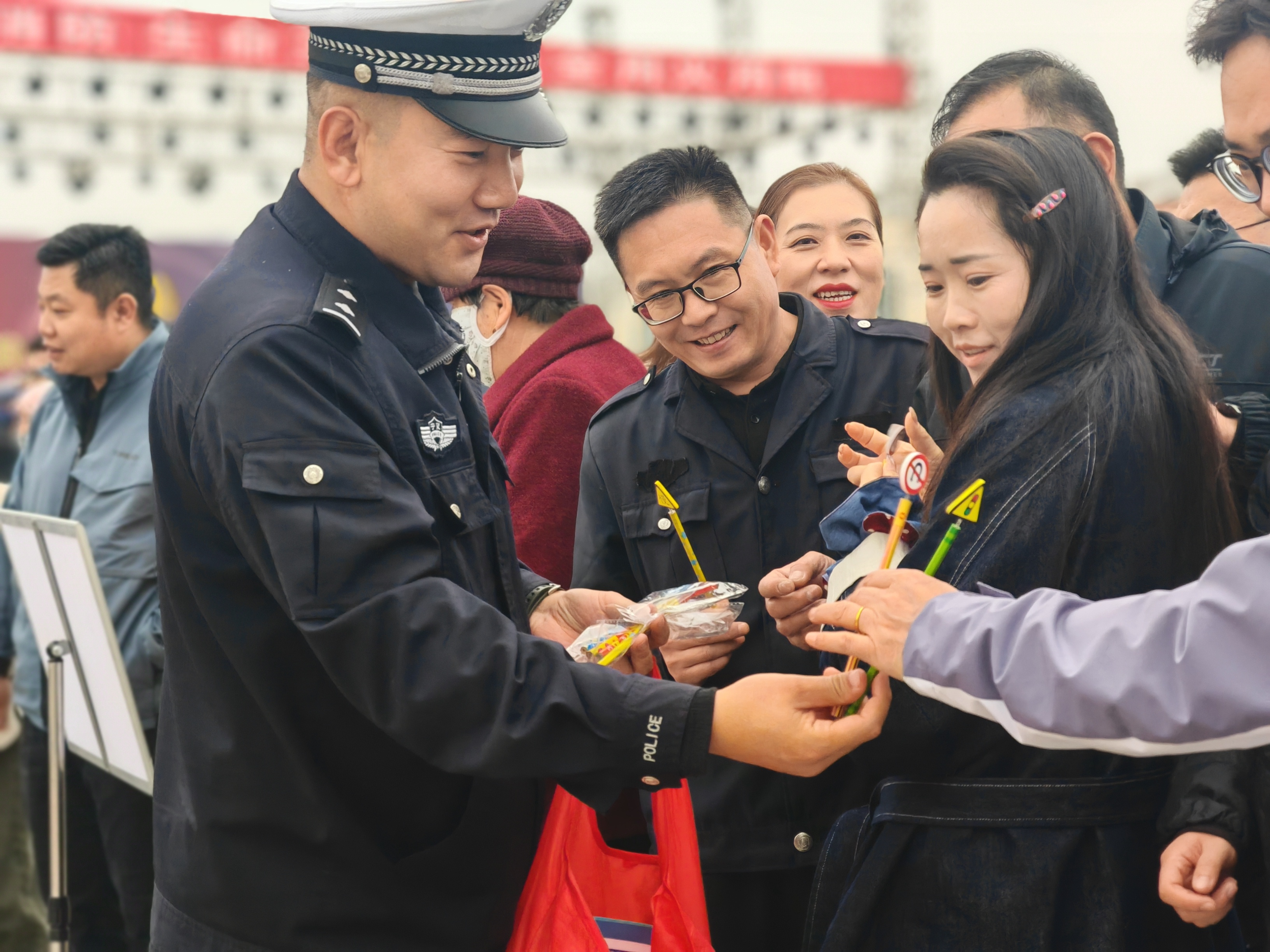 此次活动特别设置了“交通安全知识有奖问答”互动环节。民警围绕日常出行、车辆驾驶、交通标志识别等内容提出相关问题,现场群众踊跃参与,争相答题。回答正确的群众不仅收获了丰富的交通安全知识,还获得了一份由交管大队精心准备的“安全大礼”——一顶安全头盔。参与者在轻松愉快的氛围中掌握了安全头盔的正确佩戴方法,有效提升了交通安全防护意识。(平罗交管大队 张妮)