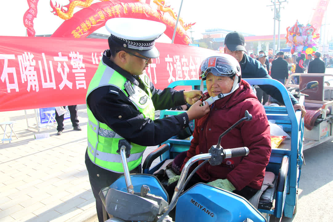 当日,石嘴山交警在活动会场设立宣传咨询点,向前来参加活动的农民群众发放交通宣传资料,讲解全市电动自行车典型交通事故案例,用喜闻乐见的方式广泛宣传电动车不佩戴安全头盔、三轮电动车违法载人等交通事故的后果,呼吁群众日常出行养成安全驾驶、文明出行的良好习惯。并且现场进行有奖知识问答,赠送安全头盔和小礼物,为电动车粘贴反光标识。