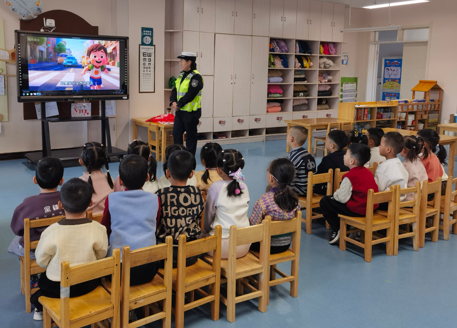 大队宣传员用图文并茂的形式,重点向幼儿们讲解走路要走人行道、靠右行、不在马路上乱跑、不随意挣脱大人的手等内容,明确告知幼儿哪些行为安全、哪些行为危险。宣传员还提醒小朋友们,过马路要做到“一看二慢三通过”,乘坐汽车时务必系好安全带,搭乘电动车时要规范佩戴安全头盔。