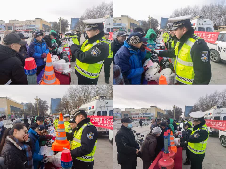 宣传人员结合冬季道路交通特点,通过设立宣传咨询点、悬挂条幅、摆放展板、发放宣传资料、展示警用装备等方式,围绕“文明交通,礼行天下”主题,向参加活动的群众着重宣传酒醉驾、闯红灯,驾车不系安全带、骑乘电动车不戴安全头盔、人行横道不礼让行人等交通违法行为的危害性和危险性。