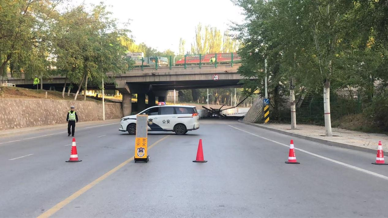 10月14日3时许,永宁县公安局交通管理大队接到群众报警称:迎凤街高速桥上发生交通事故,导致桥梁护栏脱落,坠至桥下道路,影响过往车辆通行,存在道路交通安全隐患。接到报警后,值班民警白振才立即带队驱车前往。抵达现场后,发现桥下道路中央散落着多段厚重护栏,部分部件还存在尖锐边角,仅凭现场警力根本无法快速清理。并且该路段是周边居民上下班通勤的关键通道,随着早高峰即将到来,车流量将大幅增加,若不及时处置,极易引发事故。