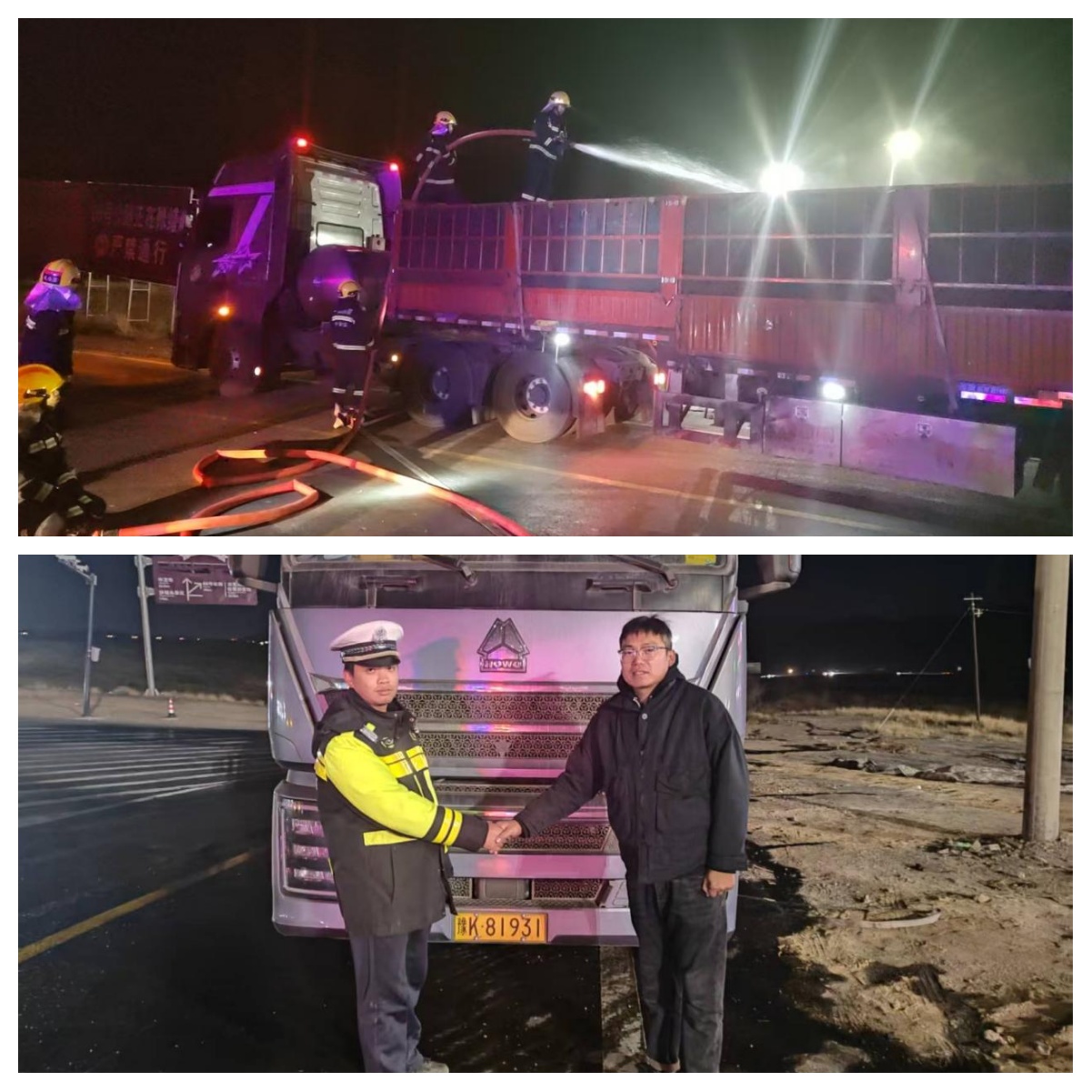 12月3日21时许,中卫市公安局交通管理局沙坡头区交警四大队接到110指令,338国道甘塘至孟家湾方向有一辆货车着火,消防部门已获通知,需交警支援。