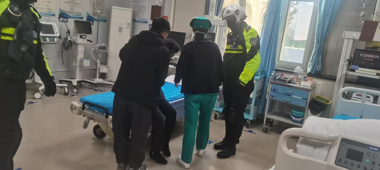 “如果不是交警开路,真不敢想后果!”患者家属紧紧握住骑警的手,眼眶泛红,连连道谢。(中宁县公安局交管大队)