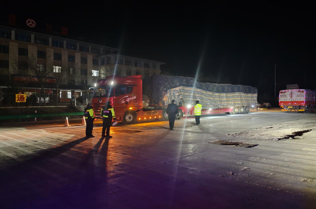 2025年11月27日凌晨0时左右,海原主线收费站报告,一辆六轴货运车辆违规使用客车ETC设备,且未经收费预检站,强行通过ETC车道驶入高速公路。宁夏交通运输厅执法监督局中卫分局执法八大队、执法九大队接到通知后,迅速响应,第一时间联合中卫市公安局交通管理局高速公路四大队、海原县公安局治安大队,展开了一场紧张有序的联合执法行动。通过核查车牌信息、细致检查车辆行驶轨迹等,精准锁定该违规车辆位置,最终在贾塘收费站出口成功将其拦截。