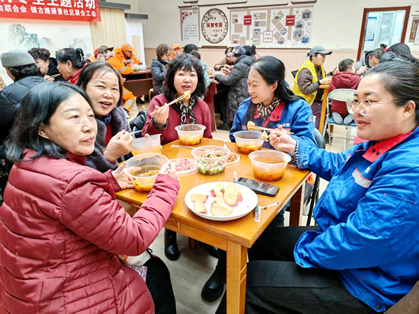 12月17日,银古路街道丽景社区联合银古路街道工会联合会、社区食堂开展“饺香传情同新同行”主题活动。邀请外卖骑手、快递小哥、环卫工人等新业态从业者,与...