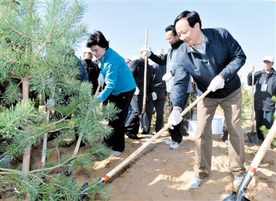 李建华刘慧参加首府大型义务植树活动