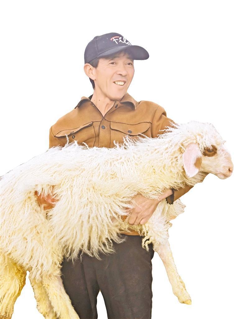 养殖户李树相与自家的羊合照。