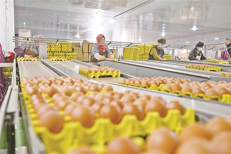 “鸡蛋从鸡舍通过传输带送到车间,再经过清洗、烘干、光检、称重、喷码、分级等多道工序,检验达到无菌标准,才能包装分销。”4月2日,宁夏富瑞生农业发展有限公司负责人郭鹏说,养殖园每天产鸡蛋超36万枚,生产包装车间90%的工序实现了智能化,一枚枚鸡蛋“乘坐”传输带“走”进检验包装车间,工人仅需完成成品包装、转运和过程检查,极大减少了人为干扰和污染。