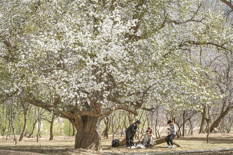 百年梨树下沐浴春日美好。