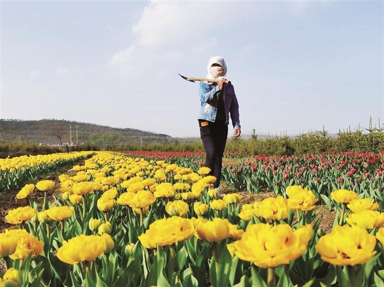 花农在巡护燕家山生态园郁金香园。近年来,泾源县把“六权改革”作为创新发展的新引擎,引进宁苗生态科技公司,探索出“社会资本参与生态建设”的新模式。陈翠英 摄