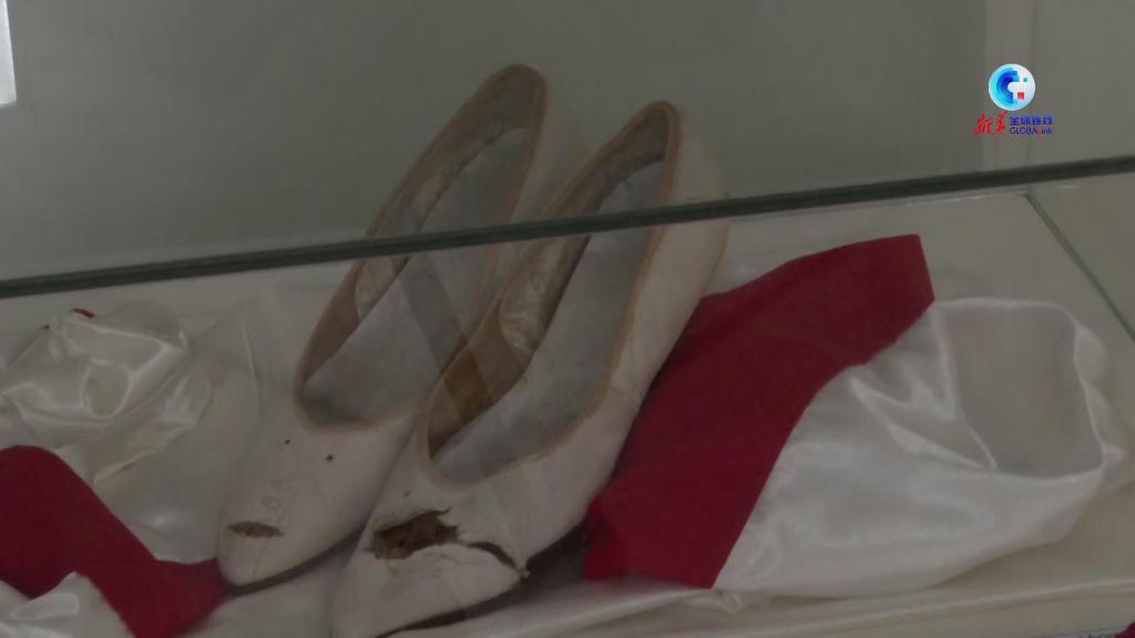 这是古巴吉隆滩博物馆收藏的罗德里格斯的小白鞋。(视频截图)