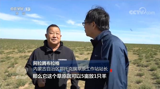 内蒙古自治区鄂托克旗草原工作站站长阿拉腾布拉格告诉总台央视记者,草原5亩放1只羊,这样既可以保证柠条固土固沙,又有经济效益和生态效益。