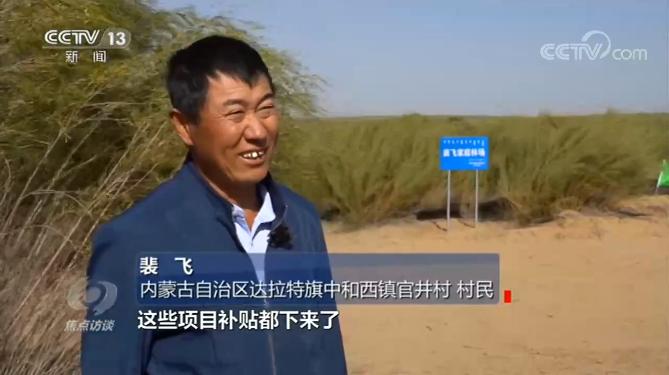 内蒙古自治区达拉特旗中和西镇官井村村民裴飞说:“这些补贴都下来了,我又回来开始又经营沙地。”