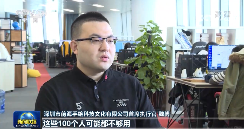 深圳市前海手绘科技文化有限公司首席执行官 魏博:这些100个人可能都不够用,所以我在前海的其他地方也租了新的办公室,也租了一层。