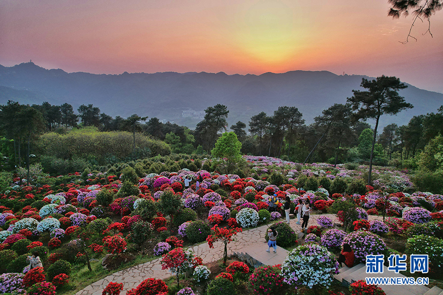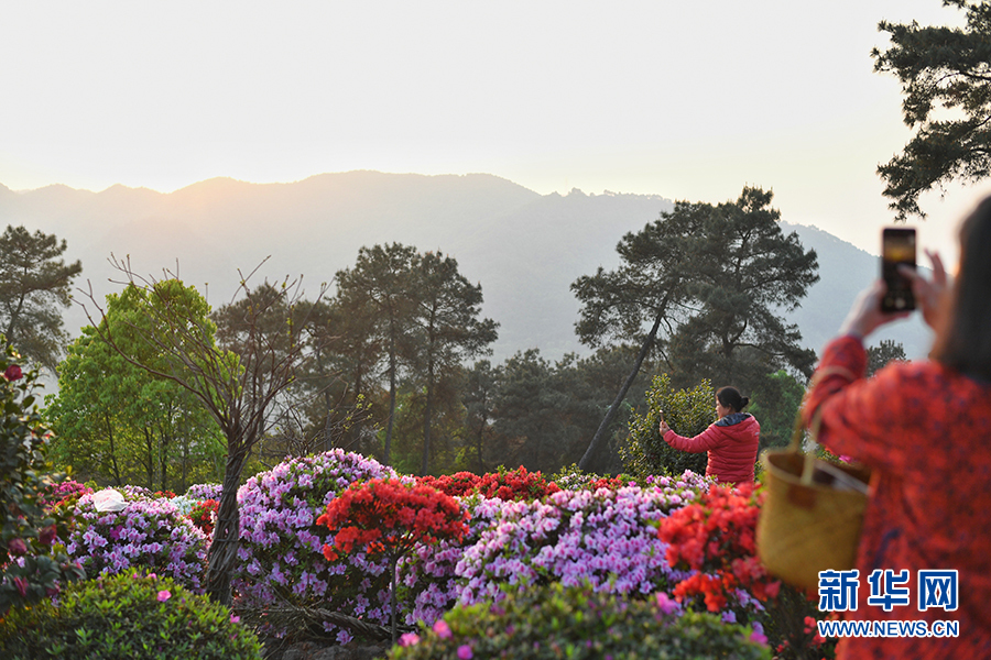 游客在放牛村杜鹃花海打卡拍照。新华网发(郭旭 摄)