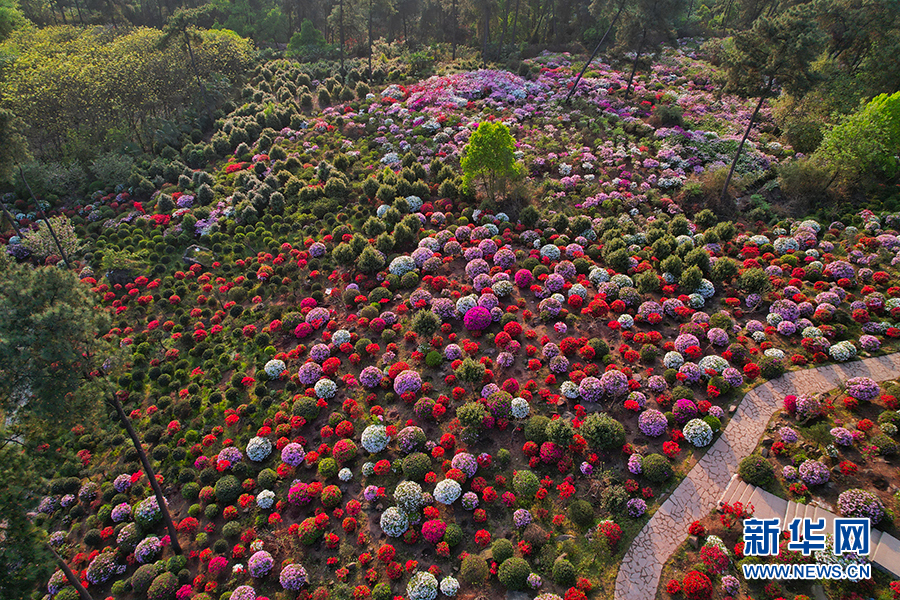 无人机视角下的放牛村杜鹃花。新华网发(郭旭 摄)