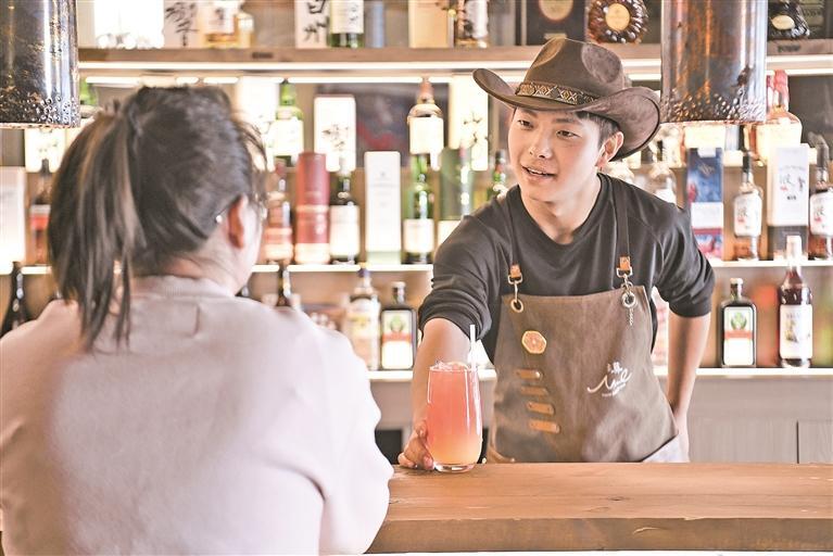 朱永强为顾客调制鸡尾酒。