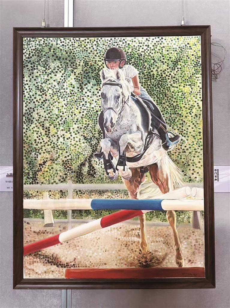 银鞍照白马,飒沓如流星。如果给画家郭飞凤的作品《马跃凌云志》配一句评语,李白《侠客行》中的名句恰如其分。