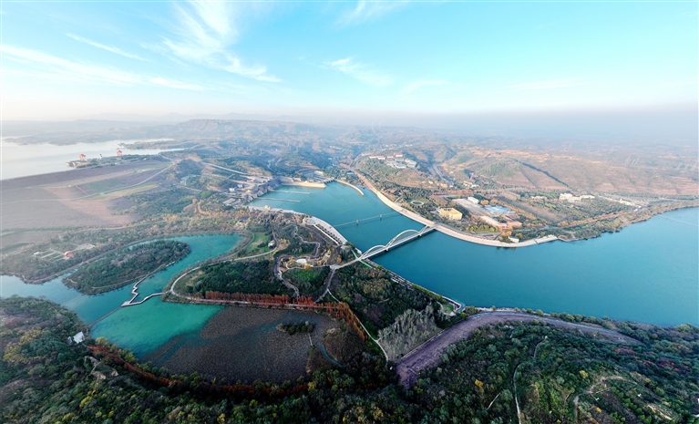 位于洛阳市孟津区的黄河小浪底水利枢纽周边植被茂密,碧波荡漾,构成一幅风情万千的生态画卷。 郑占波 摄