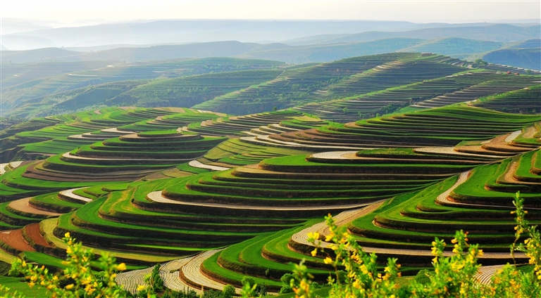 甘肃地处三大高原交会处,水土流失一度是生态发展的“心腹之患”。昔日的庄浪县“十山九破头,肥土冲到沟里头”,如今百万亩梯田实现了“水不出田,土不下山”,黄土坡变成了稳产高产的“粮仓”。