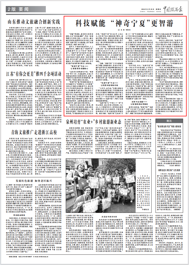 “游客可以通过扫描二维码、搜索、分享等方式直接访问,或通过景区引导、优惠活动等间接渠道进入,‘说走就走的旅行’更加轻松且富有文化获得感。”宁夏旅游信息中心主任马林介绍,“智游宁夏”自2024年上线以来,已积累了较大规模的用户群体,游客对周边、导览、虚拟体验等服务功能使用最为频繁。根据后台数据,用户在这一部分页面的驻留时长占到整个使用时长的60%以上。