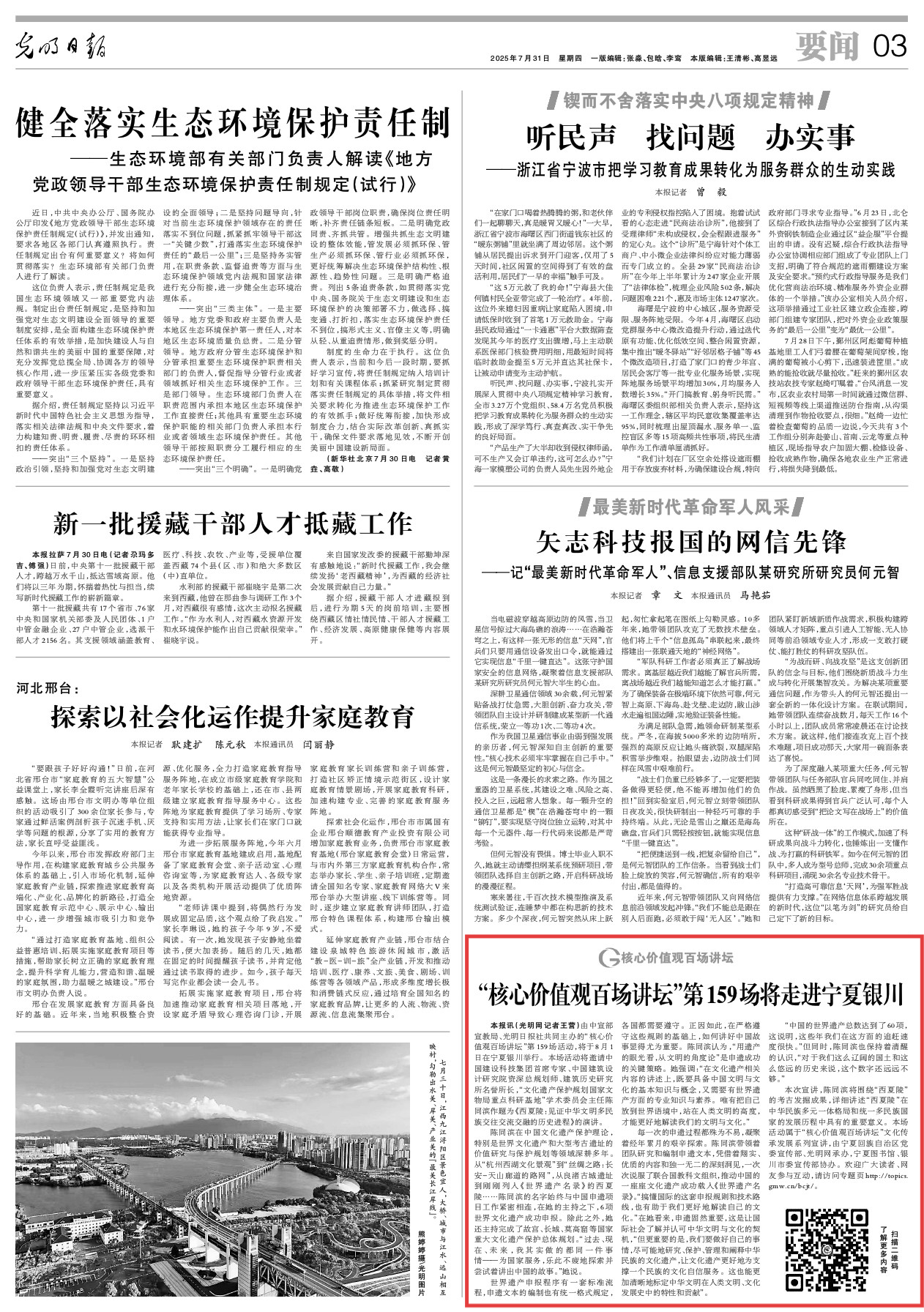 由中宣部宣教局、光明日报社共同主办的“核心价值观百场讲坛”第159场活动,将于8月1日在宁夏银川举行。本场活动将邀请中国建设科技集团首席专家、中国建筑设计研究院资深总规划师、建筑历史研究所名誉所长,“文化遗产保护规划国家文物局重点科研基地”学术委员会主任陈同滨作题为《西夏陵:见证中华文明多民族交往交流交融的历史进程》的演讲。