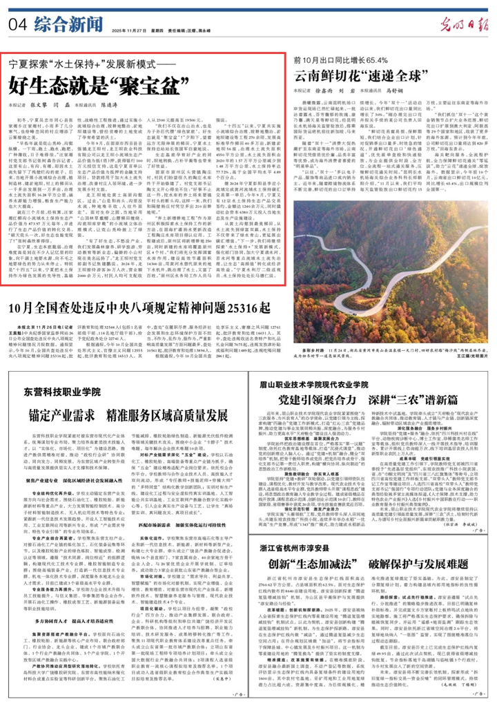 从黄土沟壑到最美梯田,从水土流失到绿富双赢,水土保持不仅带来了绿水青山,更延展出碳汇增值。“下一步,我们将继续探索‘水土保持+’发展新模式,强化部门协同,加大宁夏清水河、苦水河等重点流域水土流失治理,让生态‘高颜值’转化成经济高效益。”宁夏水利厅二级巡视员、水土保持处处长马德仁说。(记者 张文攀 闫磊 通讯员 陈连涛)