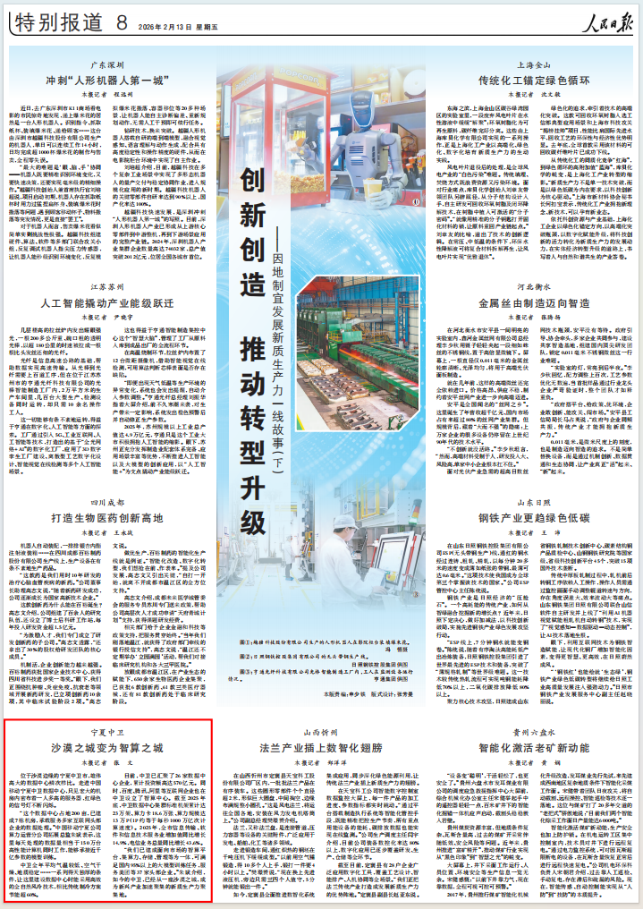 “我们已建成面向市场的智算平台,集算力、存储、管理等为一体,可满足国内95%以上的大模型训练任务,服务美团等37家头部企业。”朱斌介绍,如今的中卫,已经从一座沙漠之城,成为新兴产业加速聚集的新质生产力聚集地。(记者 张文)