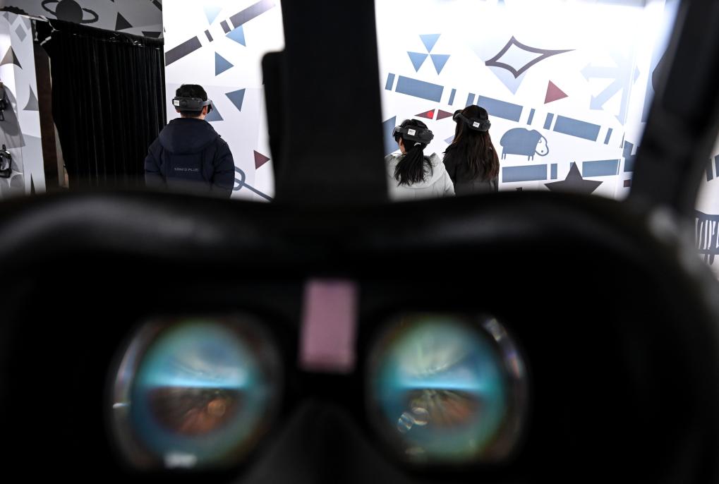 游客戴上VR眼镜,沉浸式“飞越”西夏陵、到地宫“探险”。新华社记者冯开华 摄