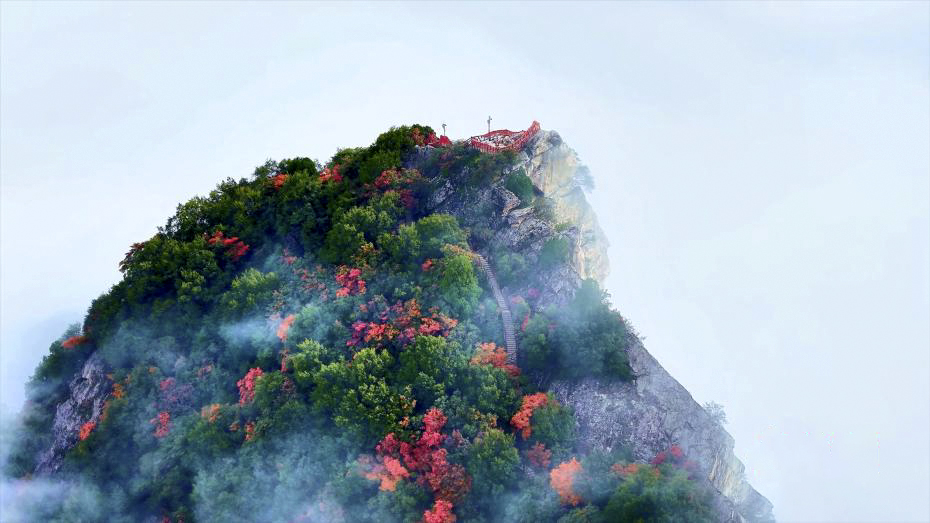 10月9日,陕西西安。雨过天晴,在秦岭翠华山上,红叶与云海美景同框呈现。群山之间,红叶如霞似锦;翠华峰上,云海奔涌似浪,构成一幅动人心魄的秋日画卷。