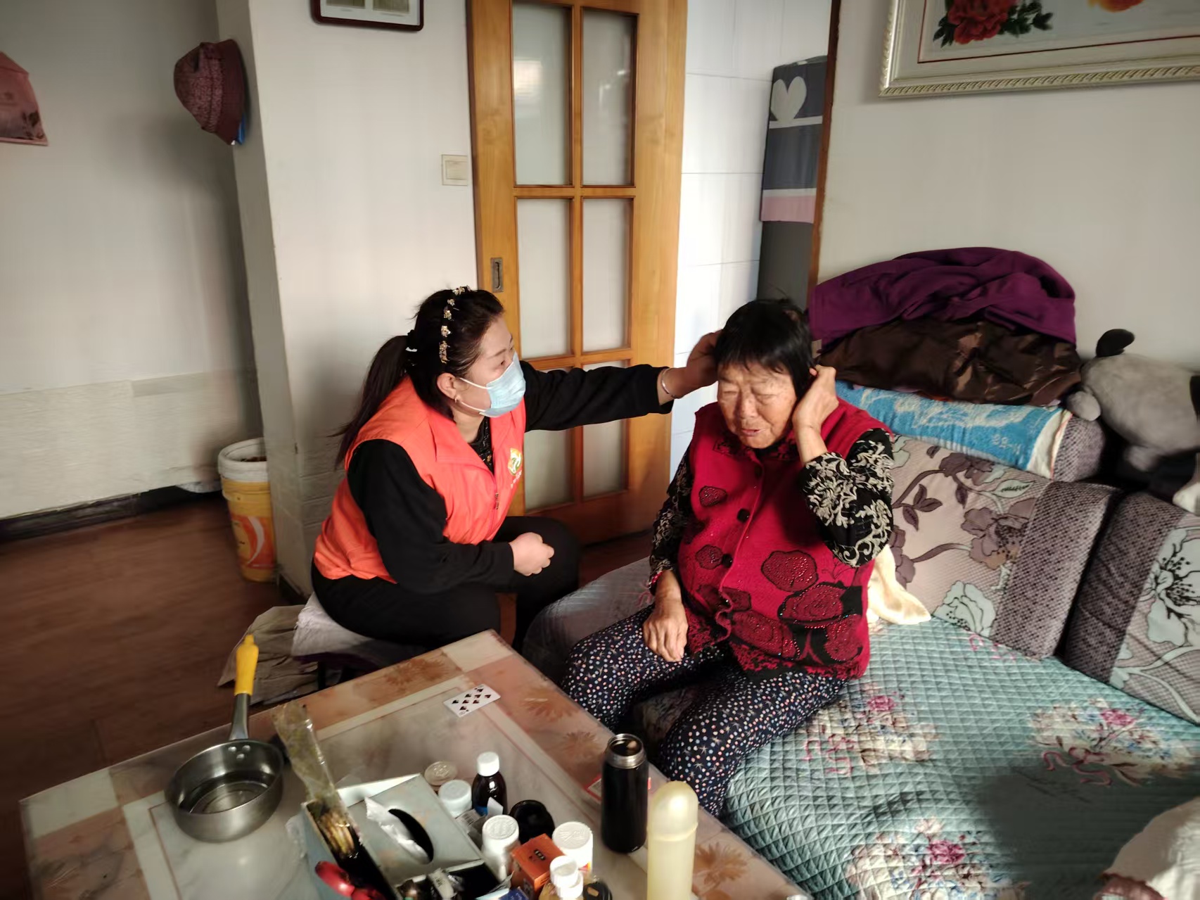 2019年,丁娟主动对接义诊医生、联合理疗机构、调配助老服务员,在平罗县城关镇唐徕社区成立平罗县情暖万家助老团。此后,一辆车、三名不同工种人员组成的“标配”服务小队,常年穿梭在平罗县各个乡村,把理发、护理、清洁等服务送到老人家中。